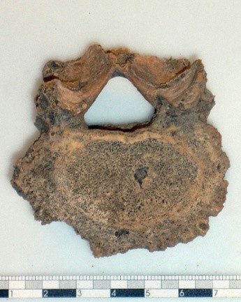 Bederní obratle s osteofyty a Schmorlovými uzly.